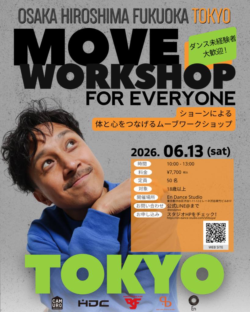 世界で活躍するダンサー Shaun Evaristoによる、振り付けなしで”体と心をつなげる”をテーマに丁寧に進める内容なので「ダンスが初めて」「レッスンについていけるか不安」という方でも安心してご参加いただけます!